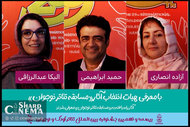 به گزارش سینما شارپ، به نقل از روابط عمومی بیست و نهمین جشنواره بین المللی تئاتر کودک و نوجوان، هیئت انتخاب آثار بخش«مسابقه تئاتر نوجوان» بیست و نهمین جشنواره بین المللی تئاتر کودک و نوجوان-همدان متشکل از آزاده انصاری، حمید ابراهیمی و الیکا عبدالرزاقی پس از ارزیابی کارشناسی آثار متقاضی این بخش، براساس ضوابط اعلامی در فراخوان، ۹ اثر نمایشی را برای حضور در جشنواره معرفی کردند.