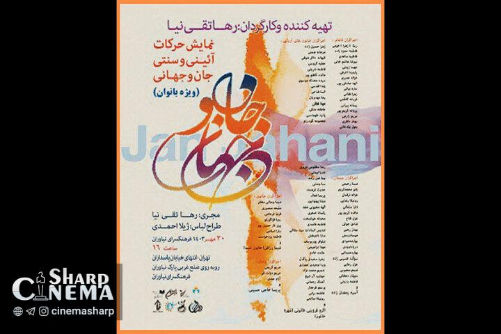 نمایش آیینی سنتی «جان و جهانی» روز جمعه ۲۰ مهر در سالن خلیج فارس فرهنگسرای نیاوران اجرا میشود. و خرید بلیت آن از طریق سایت ایرانکنسرت امکانپذیر است